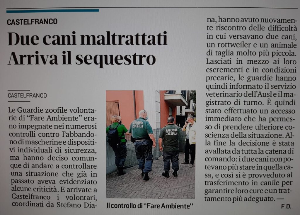 Cane disabile tenuto alla catena in cortile, salvato dalle Guardie zoofile di Fare Ambiente del Laboratorio Verde di Modena